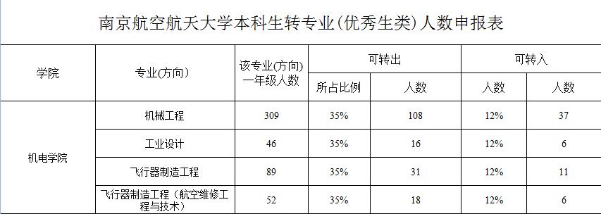 年南航半岛体育官网 本科生转专业(优秀生类)人数申报表