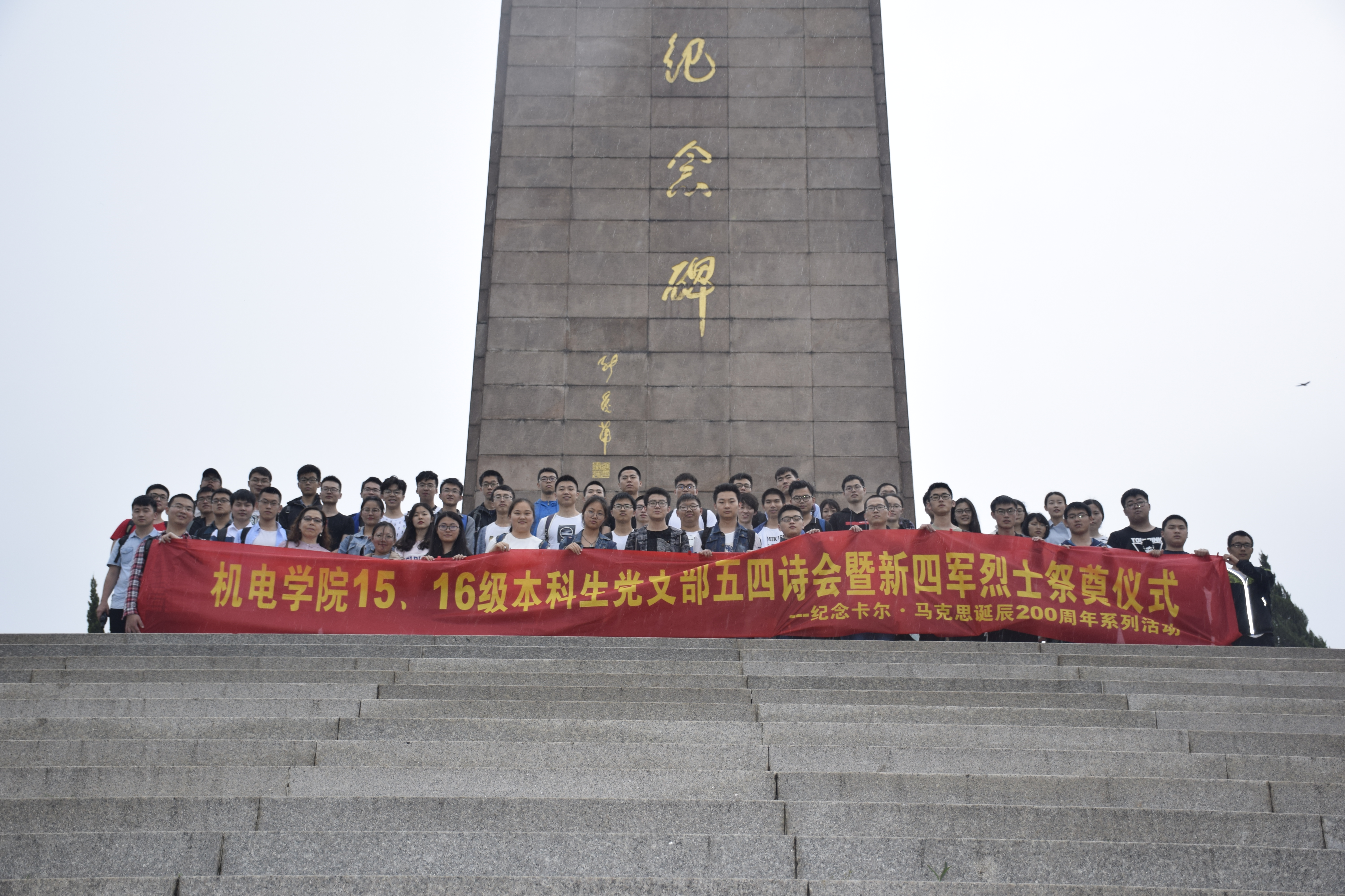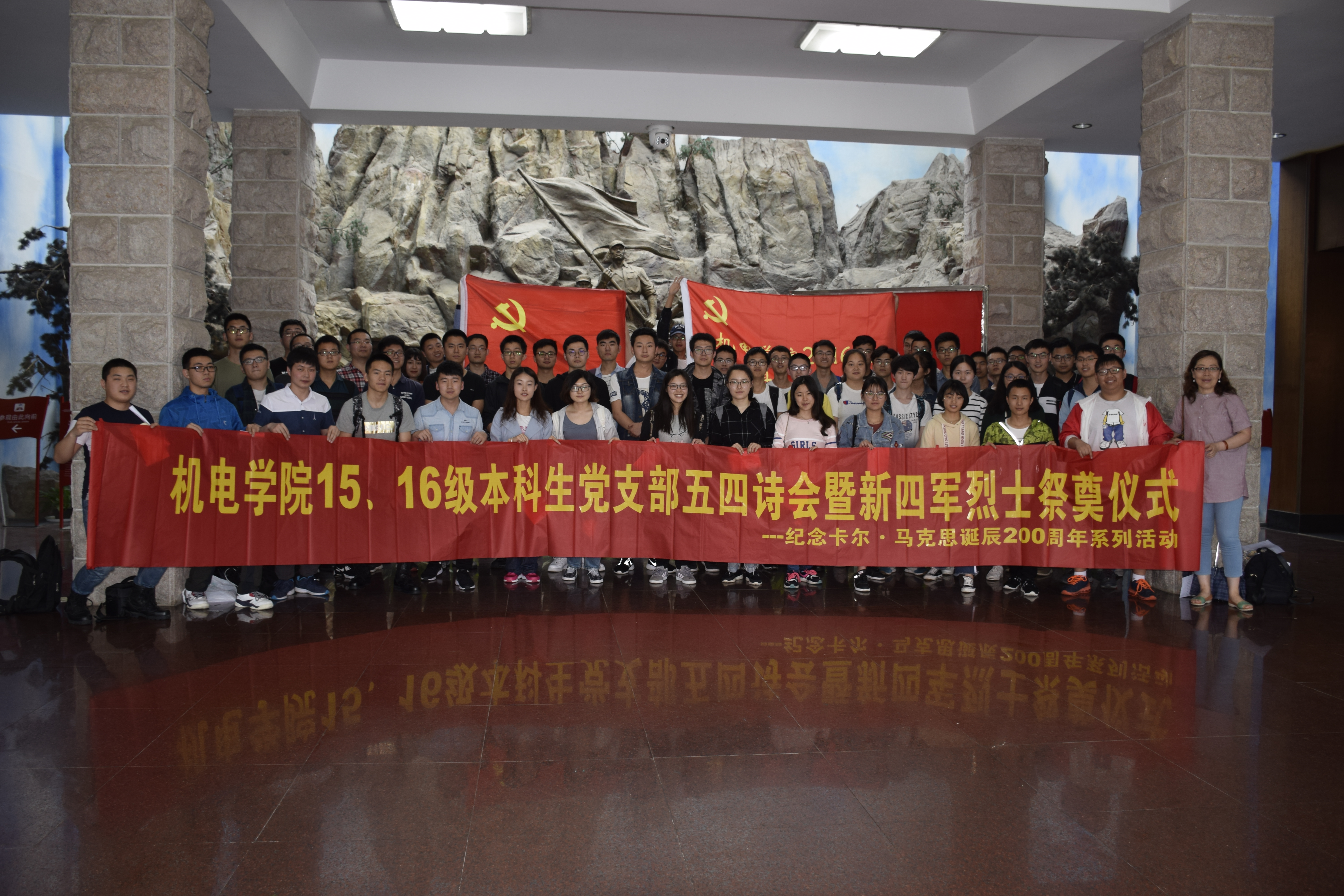 开展茅山新四军纪念馆党日主题教育活动――15、16级本科生党支部五四诗会暨新四军烈士祭奠仪式。2015级本科生党支部的19名预备党员,8名正式党员,2016级本科生党支部部分党员、积极分子代表和半岛体育官网