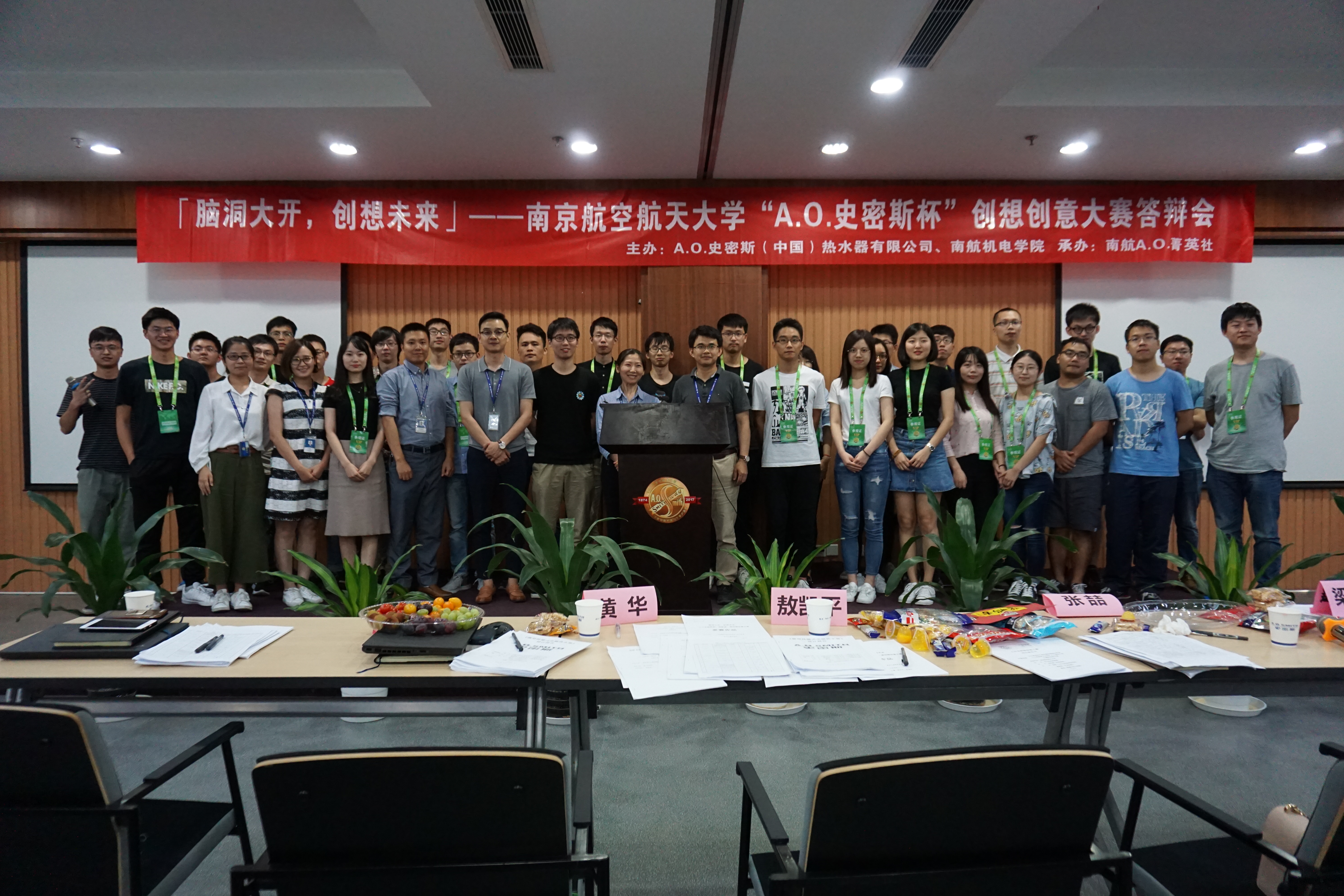 6月21日,“脑洞大开,创想未来”――南航半岛体育官网 首届“A.O.史密斯杯”创意创想大赛顺利落下帷幕,本次大赛是围绕A.O.史密斯公司旗下优秀产品进行技术、结构或概念设计、改进的技术创意型大赛,比赛由A.O.史密斯(中国)热水器有限公司、南航半岛体育官网 联合主办,由招生俱乐部A.O.菁英社承办。经过长达数月的充足前期策划与宣传工作,本次大赛于5月20日正式开赛。5月30日,A.O.菁英社邀请了企业方代表与参赛人员在南航明故宫校区15号楼举行了线下指导交流会。6月11日,企业专家审核了各参赛队伍作品进行了初审,来自6个半岛体育 研究生组成的11支队伍脱颖而出,入围了本届大赛决赛。