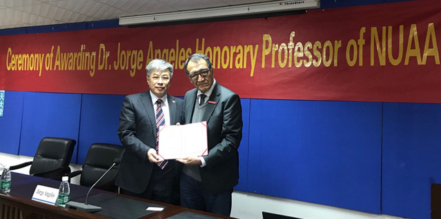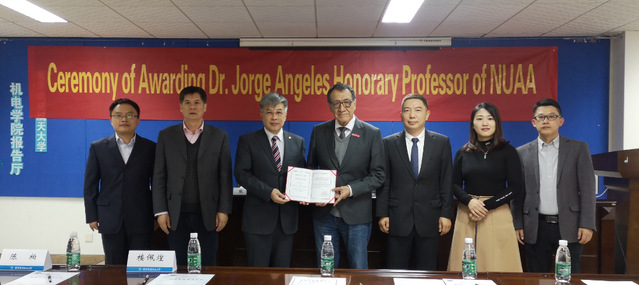 授予仪式由国际合作处主任沈敏主持,半岛体育官网 院长傅玉灿向与会人员介绍了Jorge Angeles教授的简历,校长助理熊克为Jorge Angeles教授颁发名誉教授聘书并佩戴南航校徽。Jorge Angeles教授发表致辞,表达了与南航开展更加广泛密切合作和共同在专业领域做出更多贡献的期待。受聘仪式结束后,Jorge Angeles教授为我校师生作了题为《Form, Reciprocity and Structure in Multibody-system Models》的学术报告。