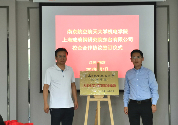 郭宇、胡中流分别代表南航半岛体育官网 、上海玻璃钢研究院东台有限公司签订了校企合作协议书,并共同为实习实践就业基地揭牌。
