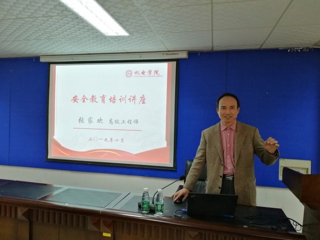 此次安全教育培训讲座邀请我院教学实验中心主任张家欢老师主讲,张老师长期从事教学实验室和实验室安全管理工作,具有丰富的实验室管理工作经验。张老师以高校实验室安全特点为切入点,介绍了人、物、管理三个方面存在的不安全行为和状态,使大家认识到了实验室的不安全因素,并且针对高校安全生产行为规范进行了详细地阐述。结合我院实际情况,张老师讲述了劳动保护用品使用、机械加工设备事故预防、实验室危化品管理等知识,提醒师生在日常学习生活中务必要做到时时安全、事事安全,讲座图文并茂,由浅入深,干货满满,老师和同学们收获颇丰。