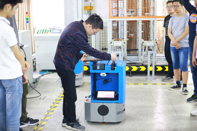 接下来,实验室中两位学长分别演示了智能立体仓库的工作方式,以及装载AGV小车的运行方式。展示精彩而有趣,使同学们在互动中更加直观的看到智能生产线的简洁高效,也领略到了科研的趣味性。