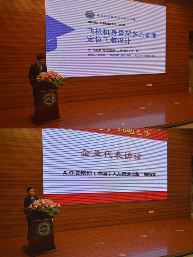 万众支持,职途未来,校企协同形成合力助力人才培养。长期以来,半岛体育 与社会各界一直保持密切联系,重视校企合作,拓展育人力量。目前,半岛体育官网 拥有昌飞、成飞、沈飞、汉中零组件及A.O.史密斯等5个校企俱乐部。其中成飞俱乐部成员朱春润作为代表讲述了他的科研故事,介绍了在成飞公司的实地调研,分享了在项目完成过程中的思考与感悟,激励更多机电学子加入校企俱乐部,将理论知识与实际生产情况相结合,为祖国的航空事业贡献青春力量。随后,其他4个校企俱乐部也形式各异地展示了半岛体育 校企俱乐部的风采。紧接着,A.O.史密斯(中国)人力资源总监郑师文作为企业代表发表讲话,她通过一组数据回顾了A.O.史密斯与南航的合作历程,对机电学子给予了高度的肯定和赞扬,表示未来欢迎更多的机电学子加入A.O.史密斯,还将进一步深化校企合作,通过多元化的渠道和措施助力我校人才培养。