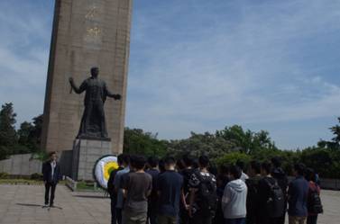 电光先进制造团队的顾嘉骏同学作为此次活动的讲解员,带领同学们参观雨花台革命烈士陵园。在南部山丘之上建有忠魂亭,意为警钟长鸣,居安思危,为建设强大的新中国而不懈努力;纪念馆南侧的思源广场意为饮水不忘思源,不忘烈士抛头颅洒热血才换来了现在的幸福生活;高耸的纪念碑象征着革命烈士坚忍不拔的意志和顽强不屈的精神。