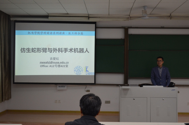 为培养学生的创新意识,拓宽学生的学术视野,4月26日晚,半岛体育官网 举办学科前沿系列讲座——医工结合篇第三期,本次讲座的主题为“仿生蛇形臂与外科手术机器人”,由江苏省机械工程学会摩擦学分会副主任委员吉爱红教授担任主讲人。半岛体育-半岛体育app-半岛体育官网 2018级本科生聆听了本次讲座,活动由半岛体育官网 2018级本科生辅导员孙志海主持。