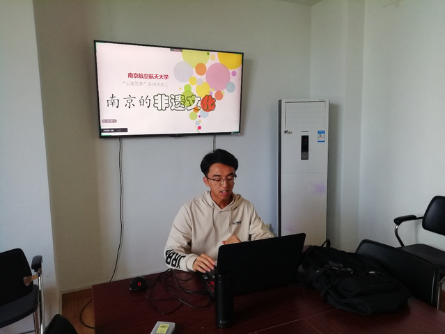 吴迪同志先从同学们身边的非遗文化出发,通过介绍广西壮族自治区贵港市的罗秀米粉、木格彩灯、油纸伞等非遗制造技艺,让同学们对非物质文化遗产有了更加具体的认识。接着,他向同学们展示了南京云锦、秦淮灯会、沈万三传说、龙舞等极具代表性的南京非物质文化遗产,并穿插了一些相关的趣味故事、历史典故,让同学们在娱乐放松的同时,学习知识、了解历史,寓教于乐。同时,课程中还增加了与同学们的互动环节,活跃课堂气氛,激发了同学们的听课热情。
