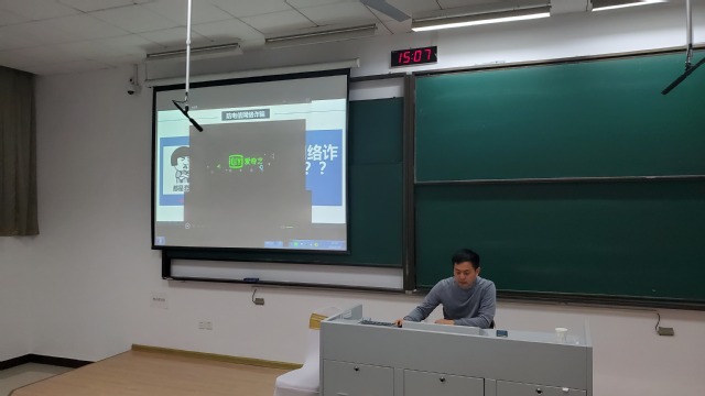 近期校园电信诈骗案件屡发不止,其诈骗手法和诱骗方式也层出不穷,日新月异,往往在不经意间就能见缝插针,使人放松警惕,令人防不胜防。在电信诈骗无孔不入之时,为有效遏制校园电信诈骗案件发案态势,增强半岛体育 师生辨别、抵制各类电信诈骗的能力,5月19日下午,半岛体育官网 特此开展防诈骗专题安全教育培训,邀请校保卫处治安管理科科长周栋栋面向师生做防范电信网络诈骗专题讲座,半岛体育 副院长成杰等师生代表参加了此次讲座。