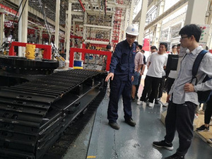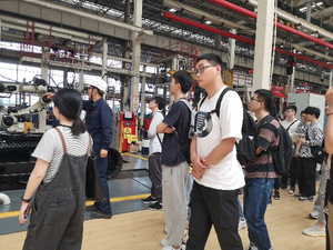 随后,师生一行通过观看三一重机宣传视频,参观培训中心和集团的中型挖掘机装配车间,进一步对三一重机有了更进一步的了解。在技术人员的详细讲解下,大家对三一集团向数字化转型所面临的挑战与机遇,以及三一集团目前业务拓展的情况有了更清晰的认识。徐广超表示南航和三一重机有着同样的“红色基因”,双方始终坚持服务于国家重大战略需求和行业发展,希望未来双方能进一步发挥自身优势,进一步深化产学研融合,推进校企联学共建。