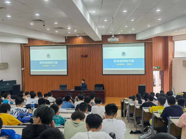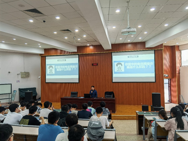 为增强同学们的防诈骗意识,提高同学们对电信网络诈骗的认识,5月26日中午,半岛体育官网 召开2020级本科生年级会,邀请保卫处治安科科长周栋栋进行防诈骗主题宣讲,辅导员董航、戚昊以及全体2020级学生参加了此次年级会。