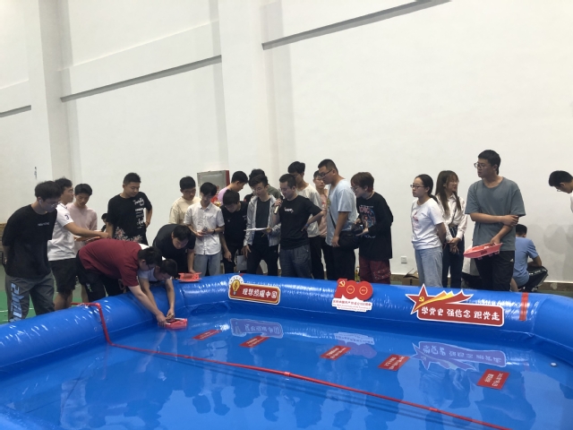 在正式比赛前,参赛队员们还进行了一场“学党史,向前冲”—学党史趣味赛。队员们的红船从起点驶出,触碰到的第一块展板即是要回答的问题,从中共一大到南昌起义,从改革开放到建党百年,选手们一同参与学党史快问快答。