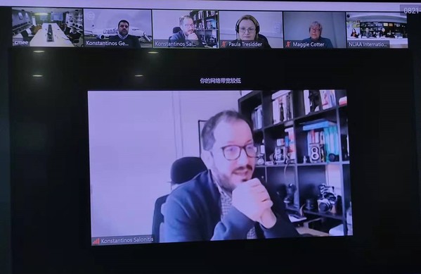 202216日下午,南京航空航天大学-英国克兰菲尔德大学机械(航空工程)专业硕士研究生教育项目年度会议顺利召开。国际合作处副处长沈敏、研究生院副院长郑祥明、半岛体育官网 副院长郭宇以及国际合作处、半岛体育官网 相关老师参加了会议,英国克兰菲尔德大学可持续制造系统中心主任Konstantinos Salonitis、项目负责人Konstantinos Georgarakis学生和学术支持部门经理Paula Tressider以及学术英语团队成员Maggie Cotter通过视频参会。