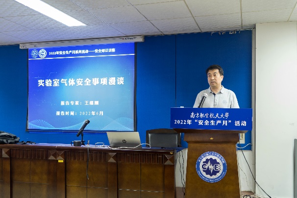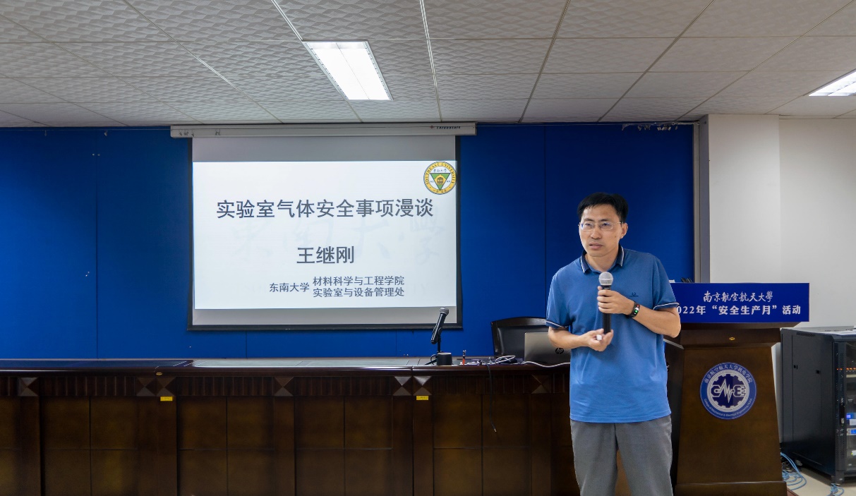 6月6日上午,学校2022年“安全生产月”首场安全知识讲座在半岛体育官网 A15号楼522会议室开讲。会议由半岛体育官网 承办,邀请了东南大学实验室与设备管理处副处长王继刚教授,开展了以实验室气体安全为主题的专题讲座。讲座采用线上线下相结合的方式,国资处处长孙占久、半岛体育官网 党委书记刘虎、院长傅玉灿以及约100位师生代表线下参加,线上近300人次参加,会议由半岛体育官网 副院长成杰主持。