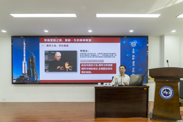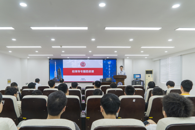 的余承业等创校老教授们,他与在座的师生们分享了众多留学科技人员奋不顾身一心回国献身国家建设的感人故事,这更加坚定了同学们一心报国、献身国防的价值追求与坚守。他还与大家分享了自己国外求学工作期间的趣闻与经历,鼓励同学们打开个人视野,扩充知识储备,在研究方面要紧跟国际科研前沿和面向国家重大需求,培养对科学研究的兴趣和创新创优的品质。