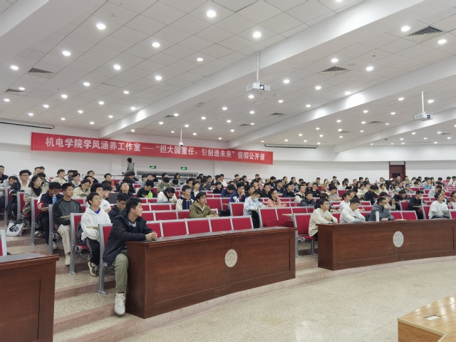 随后,戚老师以“担大国重任、引制造未来”为题,首先从风电主齿轮箱的设计入手讲述了我国制造行业发展历程,又从爱岗敬业、勤学不辍、用于创新、无私传承四个维度分享了自己的工作感悟,最后在互动环节,戚老师就学生的提问进行了耐心细致地回答,勉励学生认真学习专业知识,传承航空报国精神,踔厉奋发,勇毅前行!