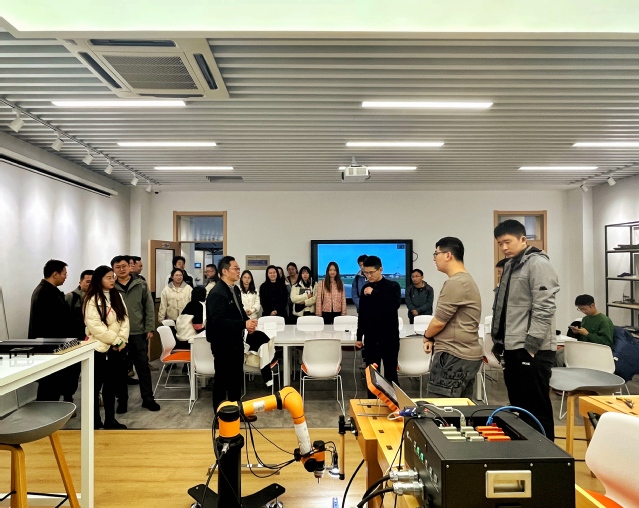 最后,双方围绕学生创新培养体系建设,进行了实地考察交流,共同参观了长空半岛体育 准书院制下的科创工作室体系建设相关成果,如智能飞行工作室、智能制造工作室、美育工作室等,就智能制造工作室机器人项目协同共建机制达成共识。