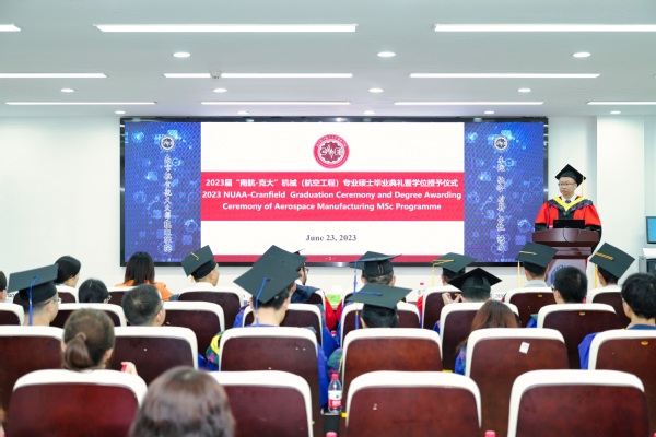 6月23日上午,2023届“南京航空航天大学-英国克兰菲尔德大学(以下简称南航-克大)”机械(航空工程)专业硕士毕业典礼暨学位授予仪式顺利举行。英国克大可持续制造系统中心主任Konstantinos Salonitis,航空制造项目负责人Konstantinos Georgarakis,我校国合处处长张卓、副处长沈敏,研究生院副院长郑祥明,半岛体育官网 党委书记刘虎、院长傅玉灿、副院长郭宇,项目各届班主任与相关工作人员,2023届毕业生和家长出席了毕业典礼。典礼由郭宇主持。