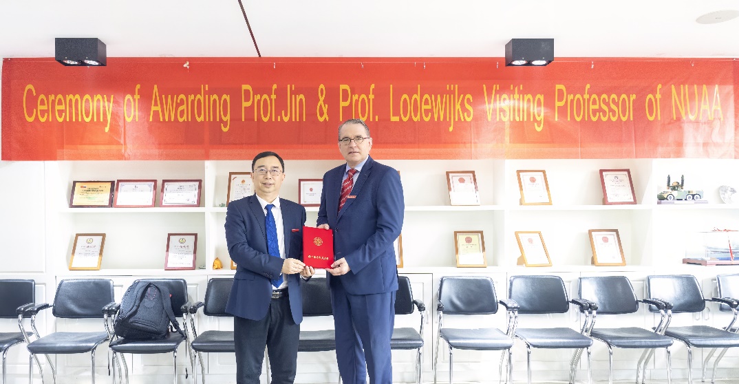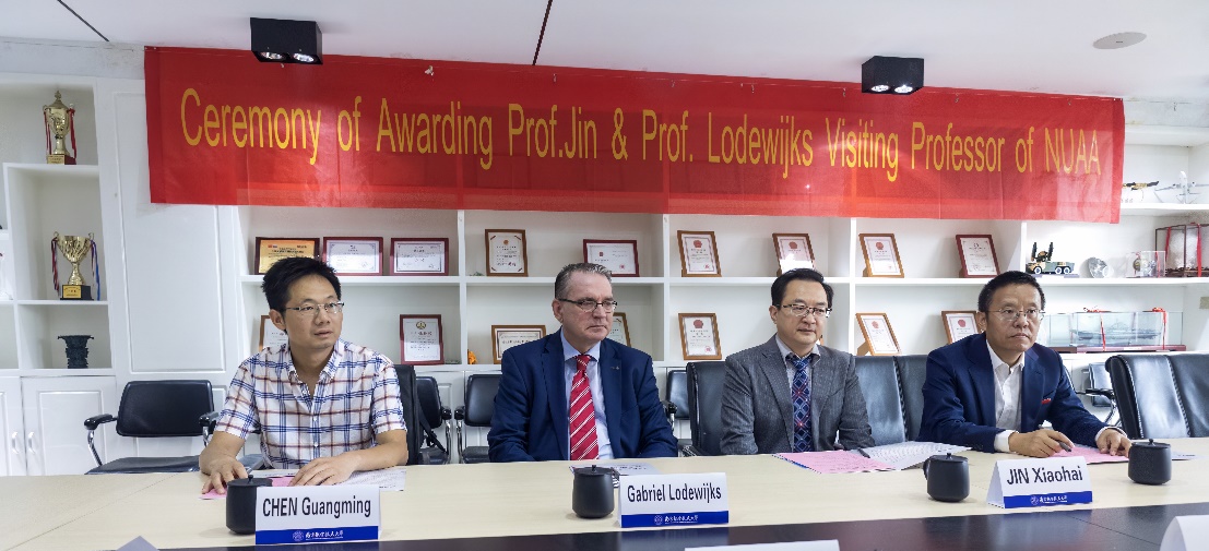 沈敏向与会人员简要介绍了金啸海教授和Gabriel Lodewijks 教授的基本情况,包括教育背景、工作经历及取得的重点科研成就。姜斌代表学校为两位教授颁发客座教授聘书,并为他们佩戴校徽。金啸海教授和Gabriel Lodewijks 教授感谢学校对他们的信任,表示在当前与我校半岛体育官网 吉爱红教授团队在康复机器人与航空系统服务机器人等领域已有较好合作基础上,未来将与南航开展更加深入、全面的学术和人才培养方面的合作。