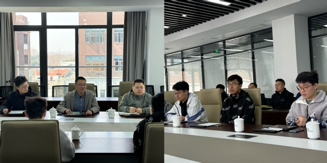 赵铮一行先后参观了实验室、研究生工作室、宿舍、食堂,并与国际创新港建设管理办公室主任田威、副主任徐永利、南京长江工业技术研究院有限公司总经理范聪泽就研究生教育管理服务方面的问题进行了现场交流。