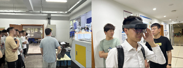 最后,实验室的研究生们带领大家参观了基于虚拟增强现实的机器人控制系统,同学们佩戴上特制VR眼镜,即可对机械臂进行操控与示教体验,并可以实现远程操作。同时,同学们还观摩了奇瑞汽车的智能工厂管理系统,在云端即可随时查看工厂的各项工作细节及工作状态。
