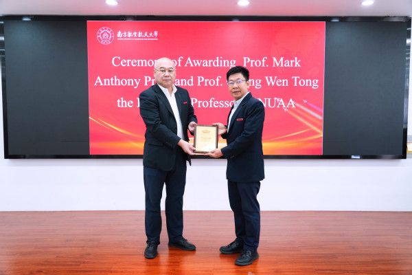 两位教授对受聘为南航名誉教授感到非常荣幸。普莱斯教授表示,与南航在数字化设计制造方面已有近十年的合作,共同产出了一批高水平科研成果,培养了优秀学生,未来将更好的加强合作。张纹通教授表示,将在智能设计与新能源领域与南航开展更加深入全面的合作,并尽自己所能为南航发展建设贡献力量。