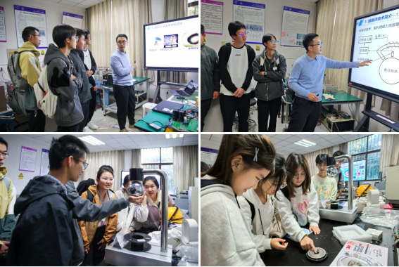 随后,20余名学生在中心实验室杨雪峰、朱文魁老师带领下,重点体验了智能制造系统实验室和磁悬浮及振动控制实验室,讲解老师依次为大家介绍了两个实验室的研究方向、工程应用及本科生可以参与的科研项目,并通过视频和现场实际操作向同学们展示了部分研究成果,使同学们近距离感受到了前沿科研的独特魅力。