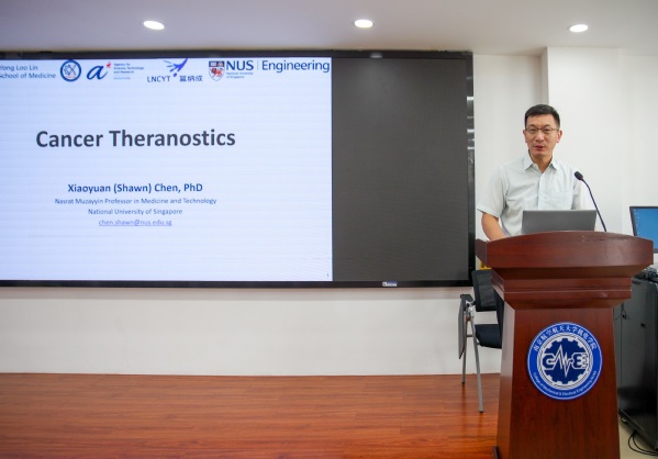陈小元院士,新加坡国家科半岛体育 院士、欧洲科半岛体育 院士、欧盟科半岛体育 院士,现任新加坡国立大学杨潞龄医半岛体育 /工程半岛体育 双聘终身讲席教授,新加坡国立大学纳米医学转化研究部主任及医半岛体育 临床影像研究中心主任,主要从事创新诊疗药物的研发及临床转化工作。癌症诊疗一体化是近年来精准医学领域的重要发展方向,其核心在于整合诊断与治疗功能,实现“诊-疗协同”的个性化医疗模式,显著提升了肿瘤治疗的靶向性与可控性。诊疗一体化技术已在前列腺癌、乳腺癌等实体肿瘤中展现出显著优势,为肿瘤精准治疗提供了新的范式。陈院士在报告中首先为同学们介绍了治疗诊断学中的开发分子诊断与靶向治疗;随后分别从核素诊疗及纳米诊疗两方面入手,用幽默风趣的语言就肿瘤治疗诊断与治疗这一问题难点进行深度剖析,最后介绍了癌症诊疗领域较为前沿的发展与突破。