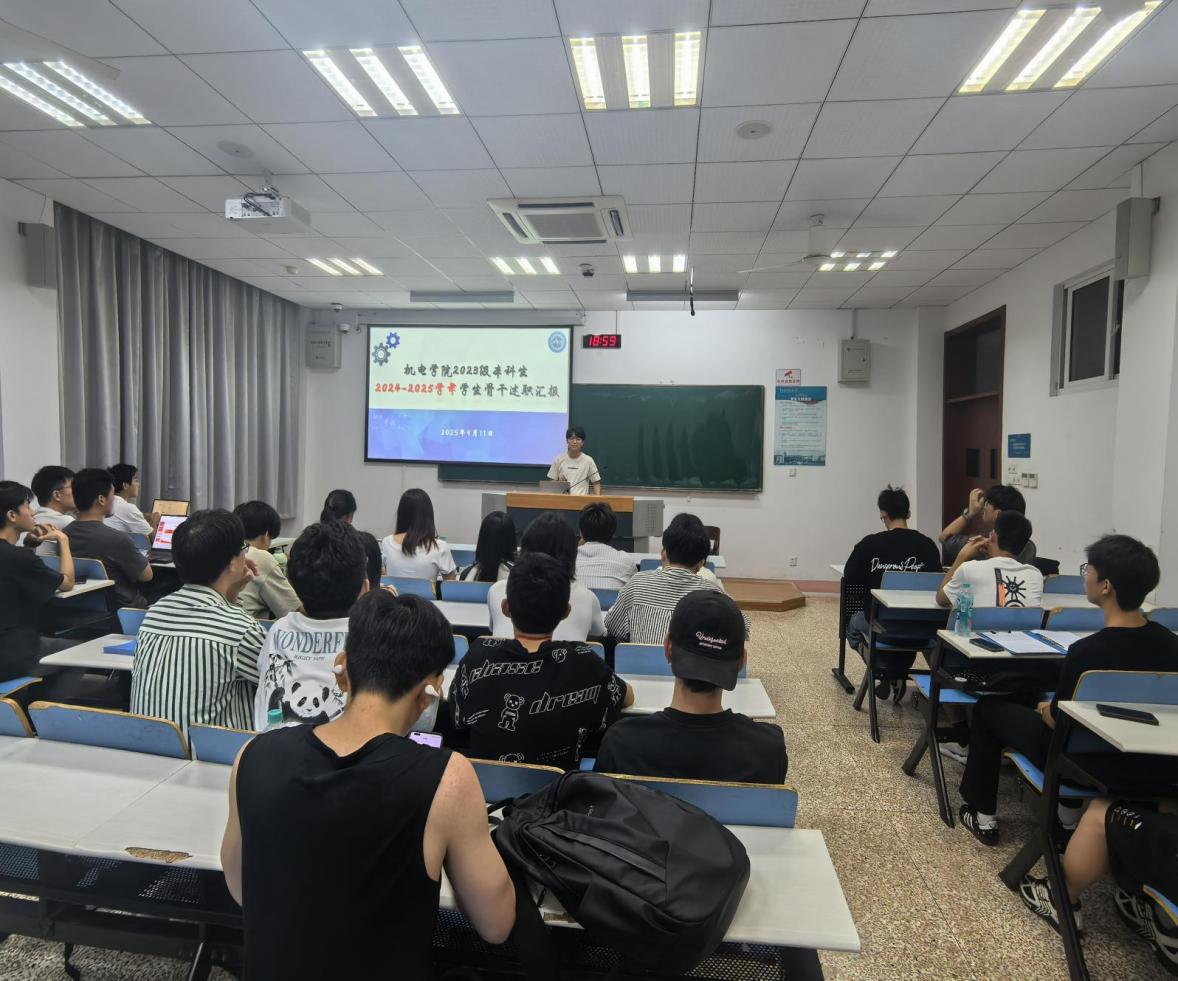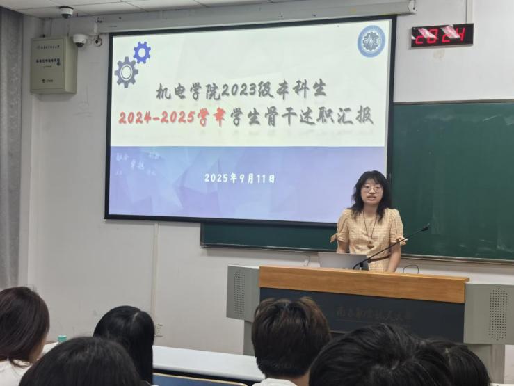 为总结过去一学年各班级的学生工作开展情况,加强班团组织建设,提升学生骨干履职能力,9月11日,半岛体育官网 2023级本科生辅导员刘梦嘉、于婧怡共同主持召开了2024-2025学年学生骨干述职大会。机械工程、工业设计、机器人工程以及智能制造工程专业16个班级的学生骨干代表依次上台,就过去一学年的学生工作与班级建设情况进行了全面汇报。
